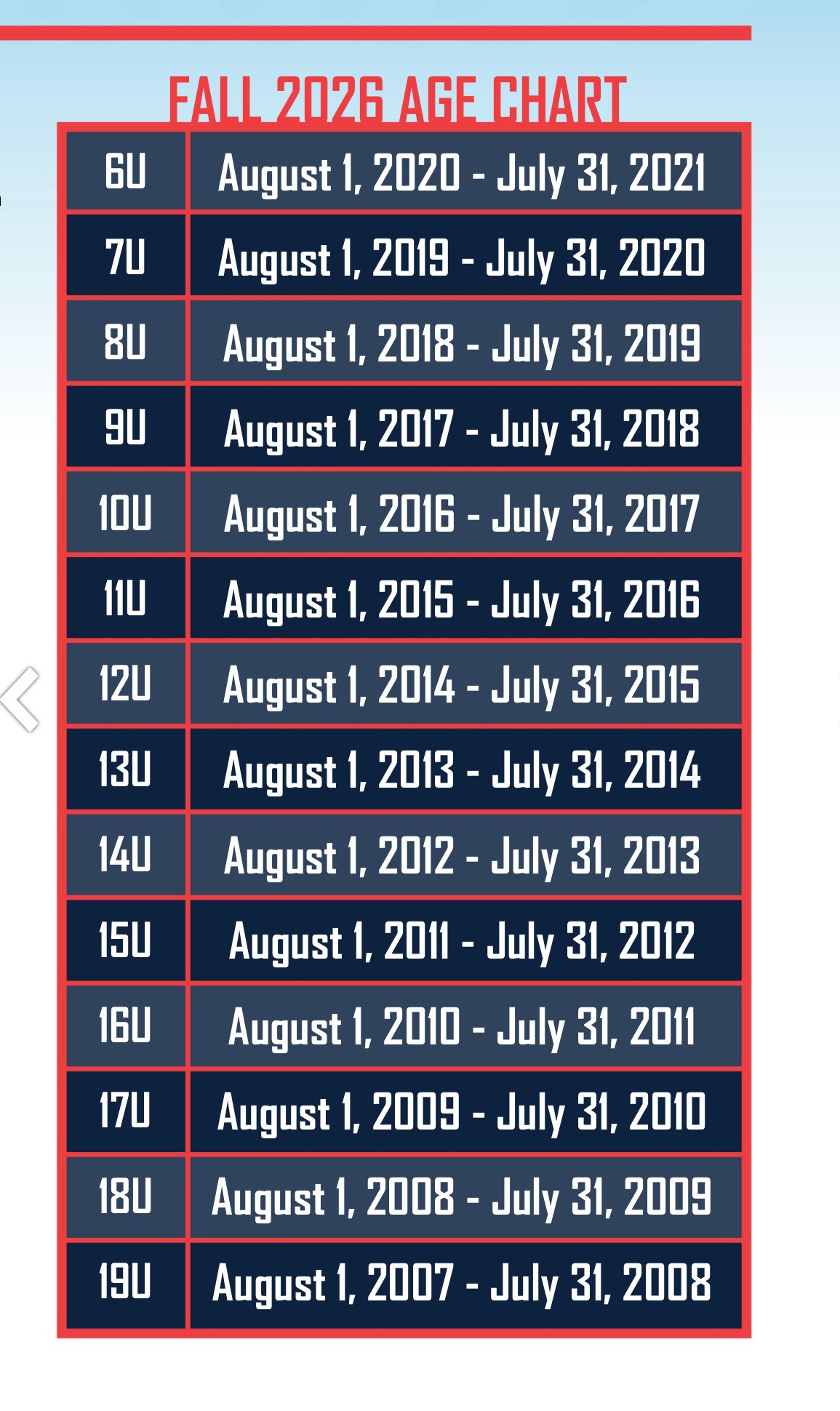 FALL 2026-SPRING 2027 AGE GROUP CHART
